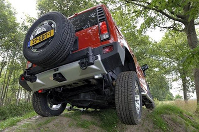 Но это всё мелочи. Главное в стенобитном «квадрате» это по-прежнему — харизма и, конечно же, проходимость. На разбомбленном просёлке мягкая подвеска (спереди торсионы, сзади пружины или пневмоэлементы) с огромными ходами без труда справляется с такими буераками и рытвинами, диву даёшься… Демпфирующих возможностей подвески хватает всегда, хоть с третьего этажа прыгай; кузову, фундаментом которому служит лонжеронная рама, это исключительно всё равно. Ну а мелочёвка до седоков не доходит вовсе. Нестись поперёк пашни на «двушке» (особенно, если она оснащена задней пневмоподвеской) одно удовольствие. Форсировать небольшие речушки и овражки? Запросто. Для «танковой» ходовой части и трансмиссии с понижающим рядом и двумя блокировками (центрального и заднего дифференциала) это всё семечки. Здесь только держись, иначе из седла вытряхнет.