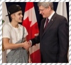 Премьер-министр Канады Стивен Харпер наградил певца Джастина Бибера медалью за «заслуги перед отечеством». Юный исполнитель получил награду, учрежденную в честь «бриллиантового юбилея» Королевы Великобритании Елизаветы II, сообщает Русская служба новостей. Всего в Канаде их было отчеканено 60 тысяч. подробнее