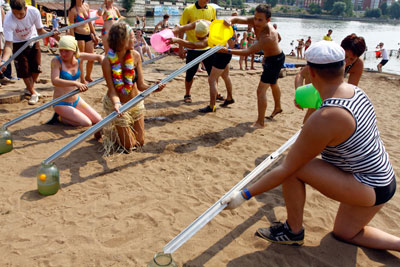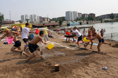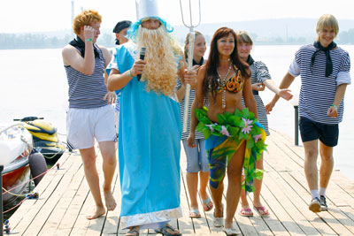 В 11:30 на Воткинском пляже «Остров» встречали Нептуна и отмечали праздник лета. Шоу-программа дня включала в себя: театрализованное представление, соревнование «Геройский забег» и выступление «Бурановских бабушек».