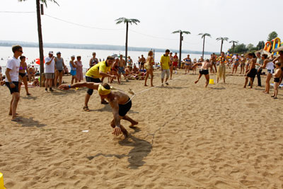 Участникам предстояло задействовать не только мозговые извилины, но и показать, свою спортивную форму в спринте добывая элементы головоломки. В последнем препятствии на пути к финальным конкурсам участники, впервые в такую жаркую погоду, взяли в руки хоккейные клюшки и играли в настоящий «Пляжный хоккей».